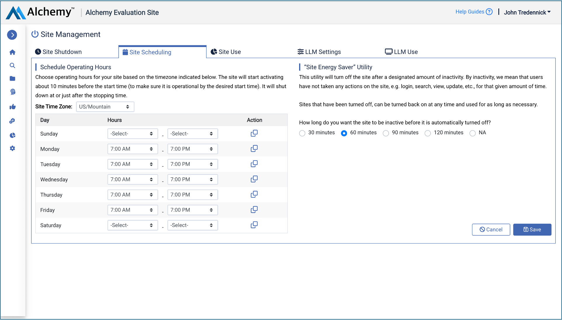 - Control costs through flexible scheduling – set operating hours or turn sites off manually