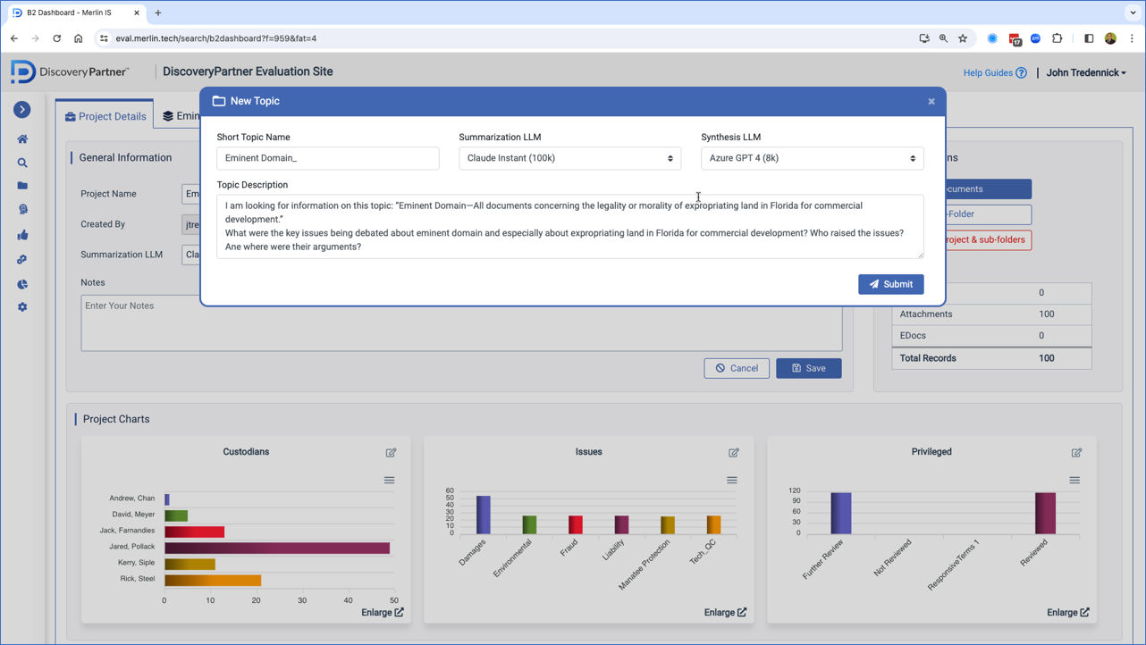 We chose a different approach for DiscoveryPartner, our AI-powered ediscovery platform. DiscoveryPartner breaks from this trend, offering an AI-powered ediscovery platform that accesses GenAI products from multiple vendors. Why do this? Because it affords the flexibility to use the best, most cost-effective LLM for each task required.