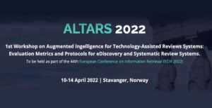 Merlin to Present Research Paper on Cluster Batching at ALTARS 2022 Â Dr. William Webber and John Tredennick were invited to present a research paper on a new form of clustering for TAR review at the at 1st Workshop on Augmented Intelligence for Technology-Assisted Reviews Systems, (ALTARS 2022) a workshop that will be held as