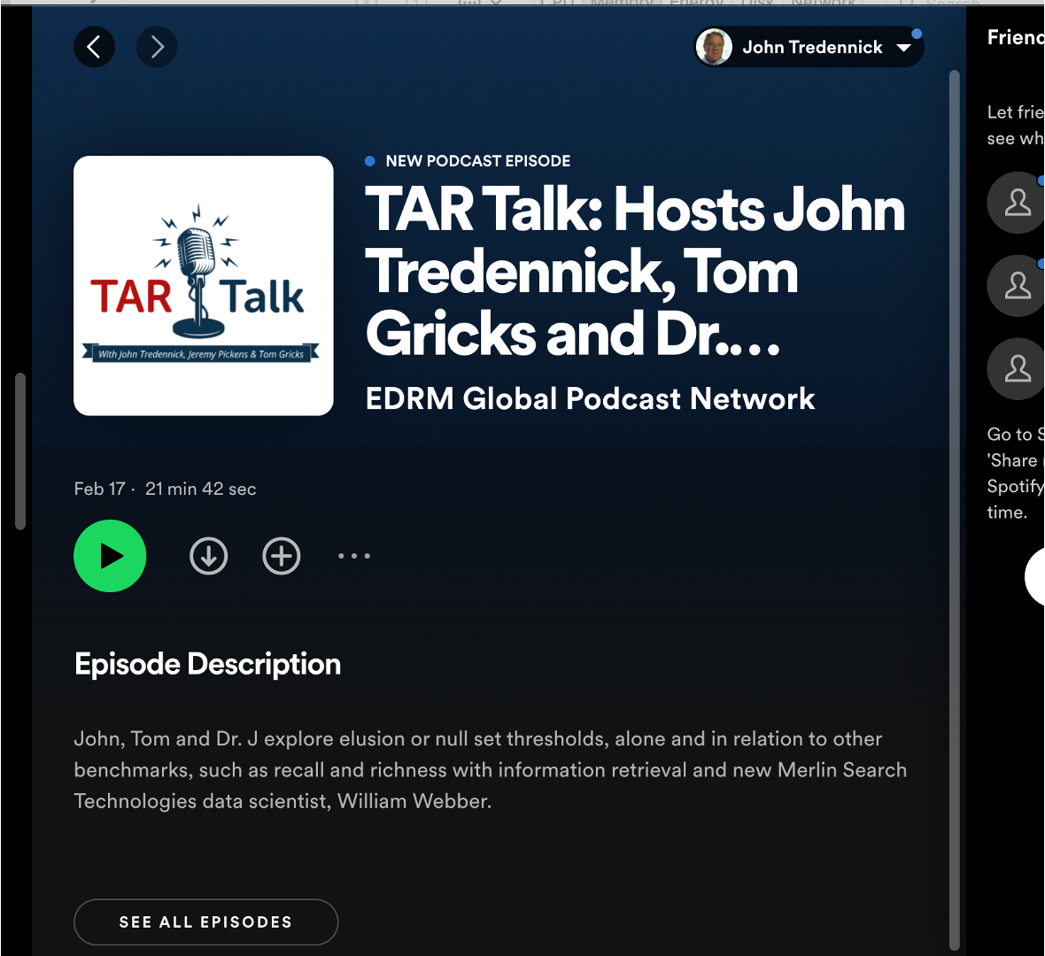 In this episode we get a chance to visit with Dr. William Webber, the Chief Data Scientist and Merlin Search Technologies.  William talks about problems with TAR validation and the reason why agreeing on an “elusion” number is a mistake. We also talk about the correct way to validate recall is to measure recall directly.Â
