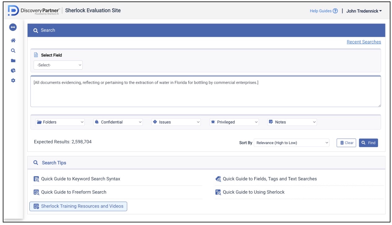 We are using a unique, AI-powered process, which we call Freeform Search, to find highly relevant documents. It will ignore search syntax and even punctuation, instead focusing on the most important terms for its retrieval efforts.
