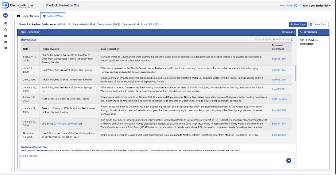 With DiscoveryPartner—powered by Sherlock AI—these reports can be completed in minutes. Our hypothetical associate actually held off sending her responses for several minutes to give the appearance of being hard at work. The whole project cost about $1.00 in AI software costs.