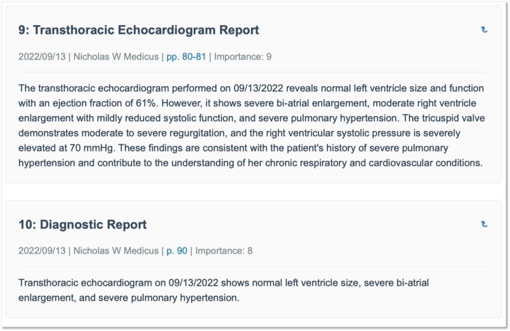 Our comprehensive medical record summaries include multiple interconnected components designed to give you complete visibility into the medical history while maintaining ease of navigation: