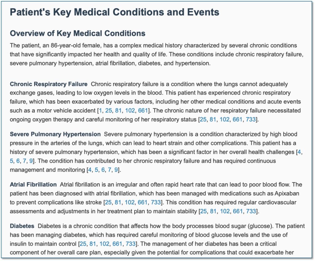 How It’s Different: Traditional medical summaries often struggle to present temporal relationships clearly. Our AI automatically generates comprehensive timelines that make causality and progression immediately apparent.