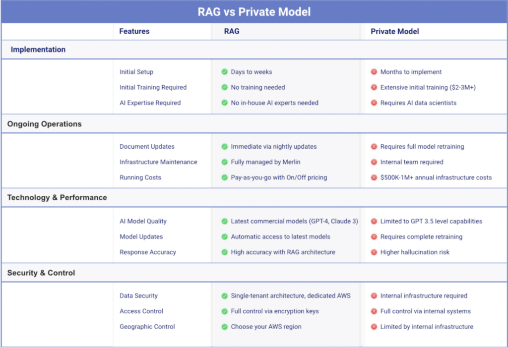 Second, RAG systems leverage the most advanced commercial LLMs available, such as GPT-4o and Claude 3.5, providing significantly superior analytical capabilities compared to private models. As these commercial models continue to evolve and improve, RAG systems automatically benefit from these advancements without additional investment or technical overhead.