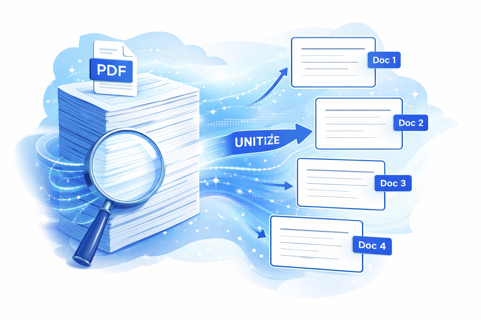 Traditional approaches to this problem haven’t changed in decades: hire staff, review pages, split files. Unitize replaces that manual process with AI that identifies document boundaries automatically, processing large collections overnight at a fraction of the cost.